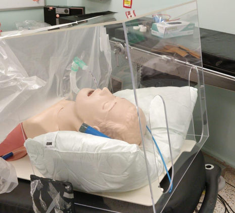 The Formtronics Intubation box is a cost-effective solution for safe airway management when supporting patients with infectious airborne diseases because it reduces the spread of aerosol when a patient is coughing and may be used as a sustainable multiuse replacement for an additional layer of protection between patient and healthcare worker. It gives access to pass-in equipment & provide cricoid pressure, fits on a normal theatre table and the hospital bed and can be covered with extra drape if needed.